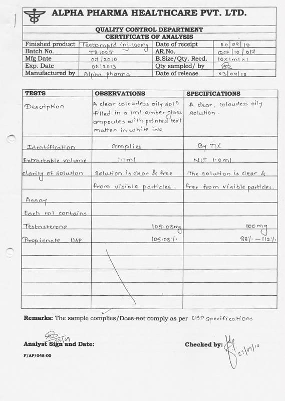 TESTOSTERONE PROPIONATE 100MG / PER ML - GENLABS Rated00 out of 5 based on 1 customer rating ( 1 customer review) Total Price $00 $0020 items sold 1 X 10ML VIAL ACTIVE INGREDIENT: TESTOSTERONE PROPIONATE 100MG/ML ACTIVE HALF-LIFE:5 DAYS CLASSIFICATION: ANABOLIC STEROID DOSAGE MEN: 300-700 MG/WEEK ACNE: YES WATER RETENTION: LOW HBR: NO